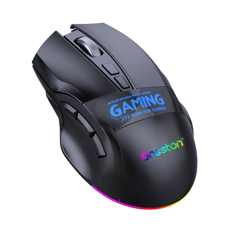 BOSSTON RGB Color Illuminated Gaming Mouse 12000DPI High Return Rate 9-Key Macro Programming Ergonomics